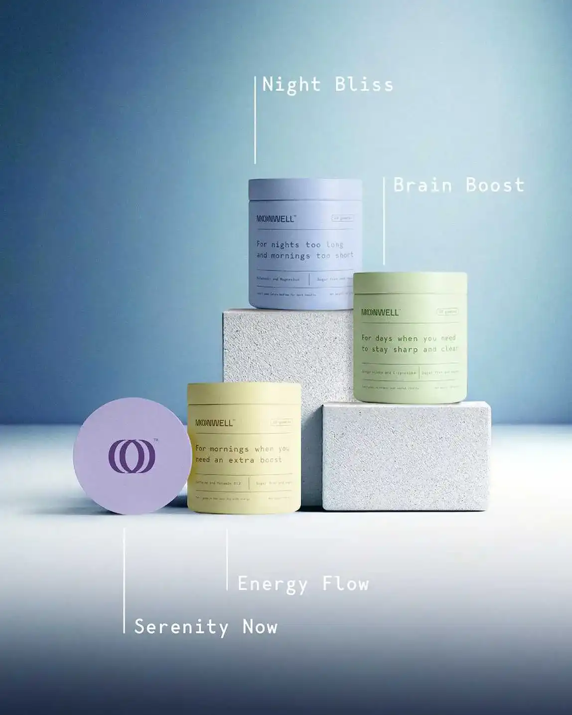 J'ai conçu l'univers global de Moonwell, une marque de gummies naturels et vegan. J'ai créer un logotype inspiré des cycles lunaires au packaging et développé une gamme complète de quatre produits (Sommeil, Sérénité, Énergie, Focus). Le projet inclut un packaging éco-responsable aux teintes pastelles, une typographie mono pour la clarté technique, ainsi qu'une animation du logo et une direction artistique digitale pour Instagram.